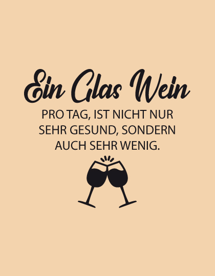 Diese Tasche ist genau das Richtige für alle Weinliebhaber mit Sinn für Humor! Mit dem Spruch „Ein Glas Wein pro Tag ist nicht nur sehr gesund, sondern auch sehr wenig“ bringst du deine Lebenseinstellung perfekt auf den Punkt – charmant, witzig und ein bisschen frech. Egal ob beim gemütlichen Abend mit Freunden, beim Wein-Tasting oder als Geschenk – diese Tasche sorgt garantiert für Lacher und Gesprächsstoff. Ein Muss für alle, die Wein nicht nur trinken, sondern zelebrieren! 🍇